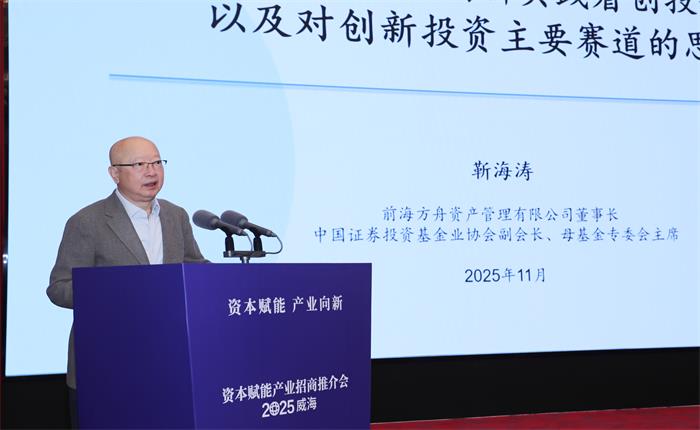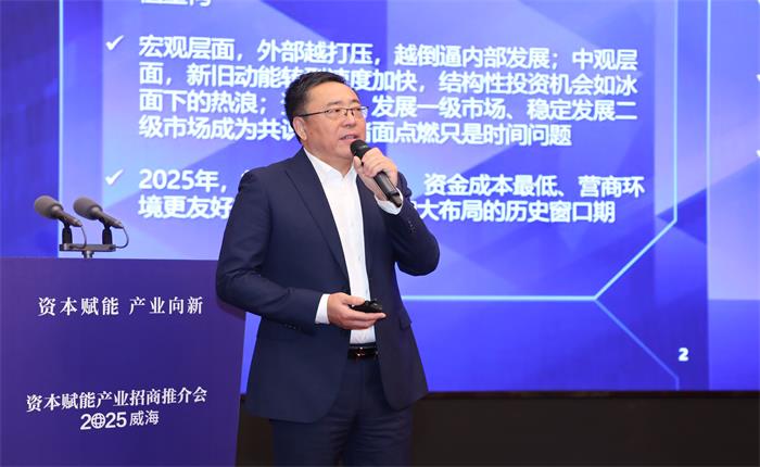 投資機(jī)構(gòu)威海“論劍” 資本助力產(chǎn)業(yè)突圍。11月5日,“資本賦能產(chǎn)業(yè)招商推介會(huì)·2025威海”在東山賓館成功舉行,來自國(guó)內(nèi)有影響力的頭部投資機(jī)構(gòu)、券商、金融機(jī)構(gòu)和優(yōu)秀企業(yè)的近200位嘉賓相聚威海,與威海各區(qū)市和企業(yè)牽手尋求資本賦能產(chǎn)業(yè)發(fā)展新機(jī)遇。市委副書記、市長(zhǎng)孔凡萍,中國(guó)國(guó)際金融股份有限公司管理委員會(huì)成員胡長(zhǎng)生,前海方舟資產(chǎn)管理有限公司董事長(zhǎng)靳海濤,江蘇毅達(dá)股權(quán)投資基金管理有限公司董事長(zhǎng)、創(chuàng)始合伙人應(yīng)文祿,山東省國(guó)資委副主任周洪文,中國(guó)銀行山東省分行副行長(zhǎng)薛冬出席會(huì)議,孔凡萍、胡長(zhǎng)生、薛冬致辭,市委常委、常務(wù)副市長(zhǎng)李建主持。