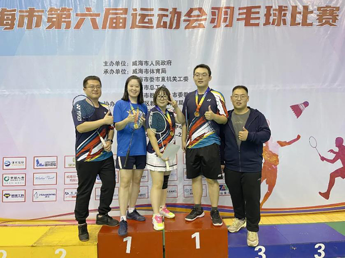 在隨后進(jìn)行的羽毛球比賽中,威海產(chǎn)投集團(tuán)5名運(yùn)動(dòng)員參加了男女單打、雙打共四個(gè)項(xiàng)目的比賽,運(yùn)動(dòng)員們奮勇拼搏、汗灑賽場(chǎng),張?jiān)?、宋修麗勇奪女子雙打冠軍,張?jiān)綂Z得女單亞軍,王彬、蔡卓群獲男雙第三名,還有三名員工分別取得單打第四、六、七名的好成績(jī)。